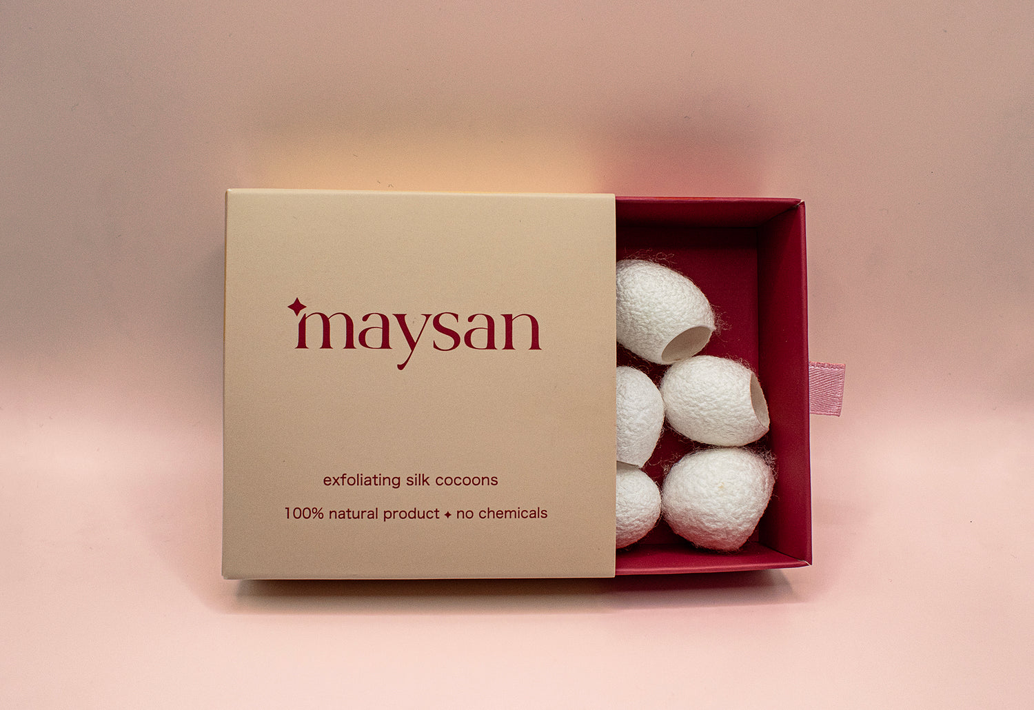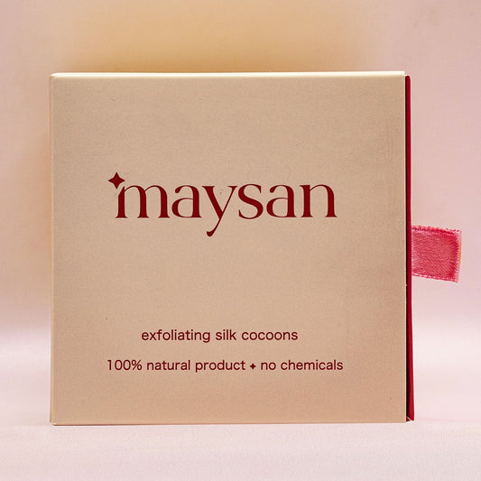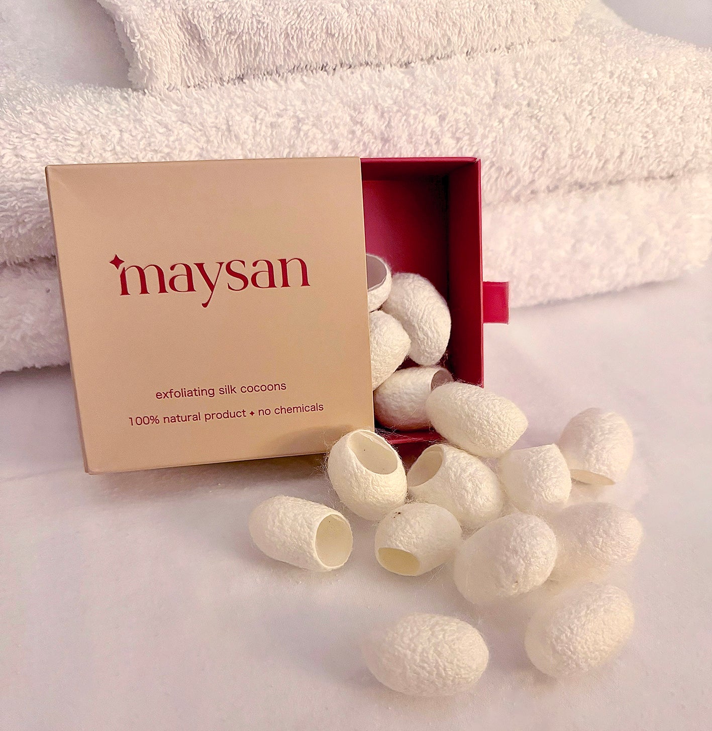 Maysan silk cocoons are Nature's precious gift to you and a gentle way to exfoliate while noticing the transformation to a healthier, brighter and silky smoother skin. Maysan is the ultimate act of self care and self love, creating an unparalleled feeling of a spa-like experience at your home. They stand out as the epitome of sustainability, being 100% natural and toxic free, biodegradable as well as a compostable product.