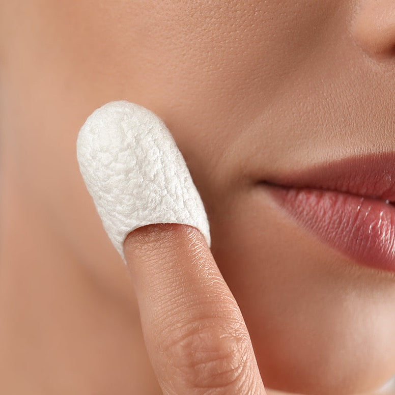 Slip the softened silk cocoon onto your fingertip like a thimble and with a gentle circular motion, exfoliate your face. Pay extra attention to areas with rough or dry skin.
